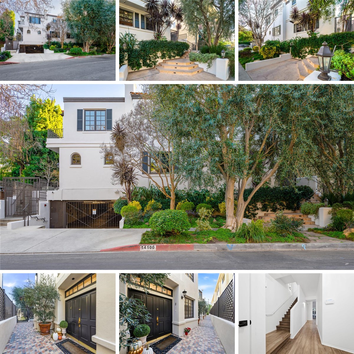 Spacious, bright, and beautifully updated, this 2-bedroom plus OFFICE townhome is ideally situated on one of Sherman Oaks’ most sought-after blocks between Stansbury and Hazeltine, just moments from the shops, dining, and lifestyle amenities along Ventura Boulevard. A formal foyer welcomes you into a thoughtfully designed home featuring in-ceiling surround sound, multiple private patios and balconies, direct access to three parking spaces, and a large in-unit laundry room updated in 2024. The oversized designer chef’s kitchen, remodeled in 2022, showcases custom wood cabinetry, chevron tile backsplash, tile flooring, Café appliances, a generous center island with dining nook, and abundant counter and storage space, all accented by curated lighting and designer finishes. An elegant dining room flows seamlessly into the sun-filled living room, where Palladium-style windows crown French doors that open to a private patio—ideal for BBQs and al fresco dining. The redesigned powder room adds a touch of modern luxury with custom hardware and refined finishes. The primary suite is a serene retreat featuring vaulted ceilings, a sitting area, walk-in closet, and French doors leading to a private balcony with tranquil treetop views. The spa-inspired primary bath offers dual sinks and a recently remodeled soaking tub. The second bedroom includes a walk-in closet and an updated adjoining bath. An expansive rooftop deck provides nearly 180-degree views, perfect for entertaining or unwinding at sunset. Additional highlights include a tankless water heater installed approximately two years ago, quick access to the 101 Freeway and nearby canyon roads to the Westside, and close proximity to Ventura Boulevard dining, shopping, Ralphs, and the new Whole Foods. This meticulously maintained building renowned for its lush, mature landscaping and inviting curb appeal.